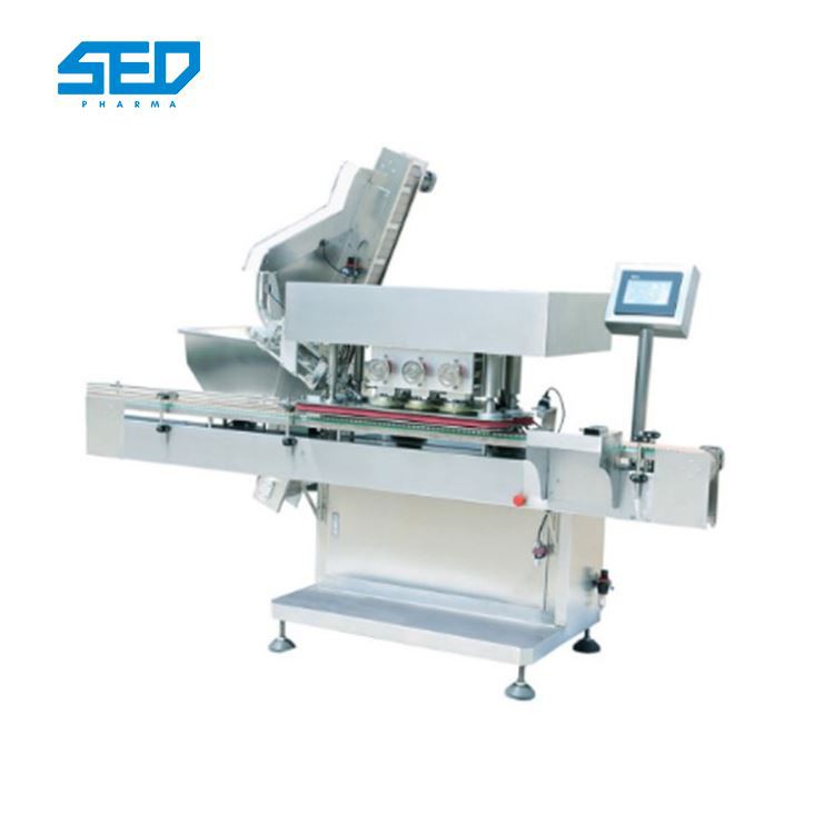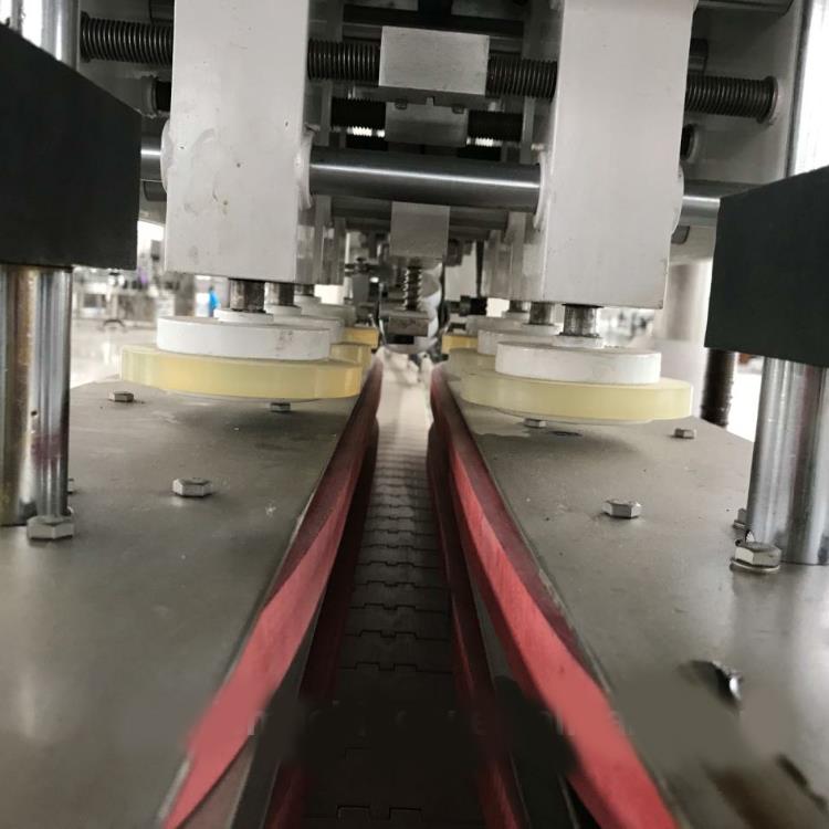 紧凑设备将自动匹配瓶帽和瓶帽瓶盖按压设备将瓶盖压缩到预闭状态三对高速旋转耐穿橡胶轮作用下,瓶帽与瓶贴近