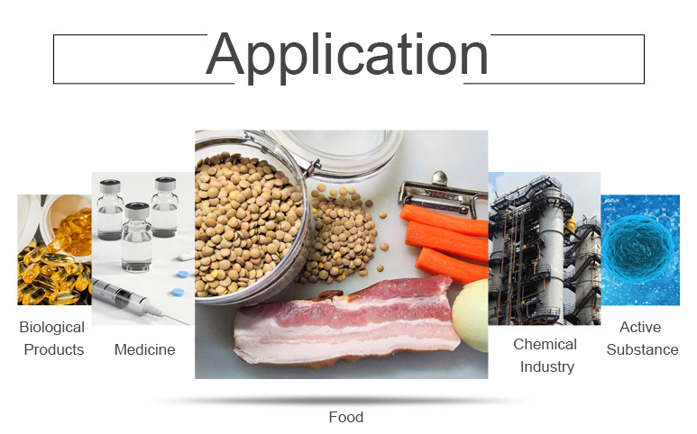 像海绵状的内部成分允许干燥的产品在需要时快速保湿。典型应用:原则上,冻干机可用于干燥几乎所有产品,包括但不限于食品,药物,生物制品,化学领域等。